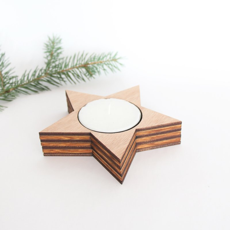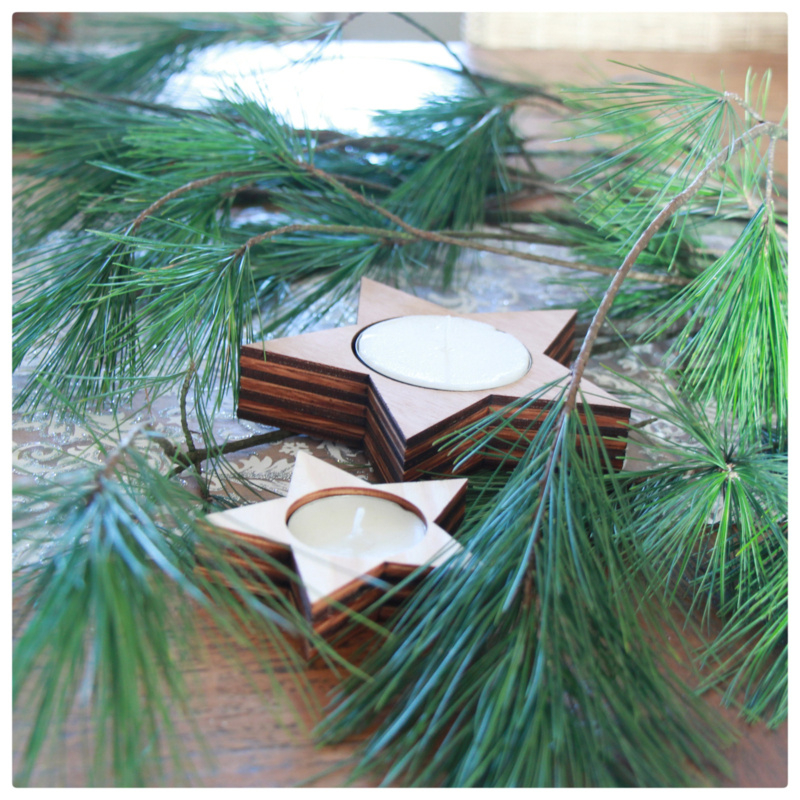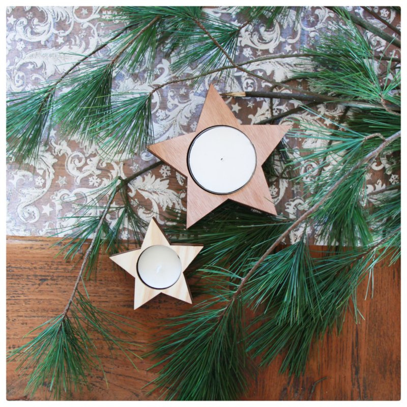 Waxinelichthouder handgemaakt van hout in de vorm van een ster, leuk voor de feestdagen!